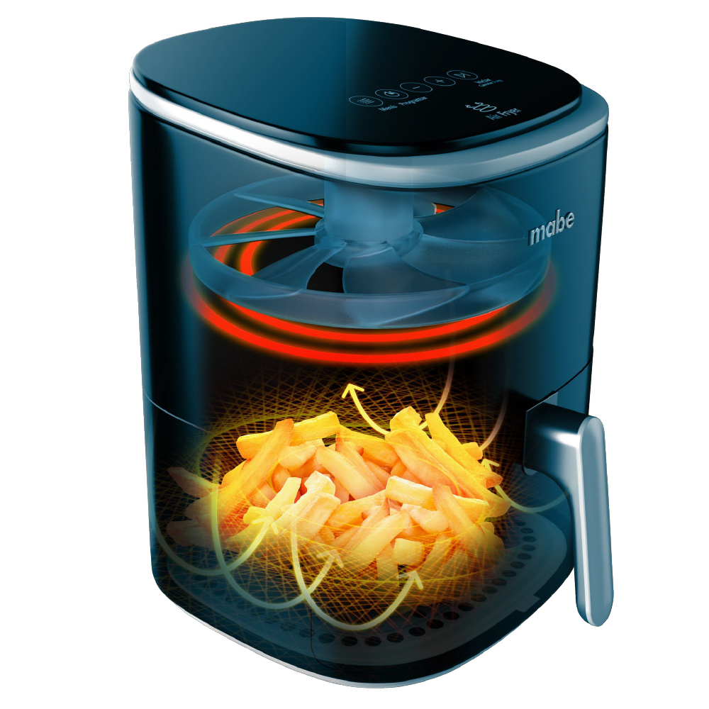 Freidora Aire Mabe de 3.8 Litros, deslumbra con todas las creaciones culinarias que podrás preparar de forma fácil y saludable.