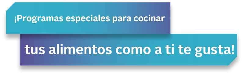 Ahora con los programas especiales podrás cocinar tus alimentos de una manera rápida y sin preocupaciones. Programas especiales: palomitas, papas, pizza, congelados, bebidas, cena.